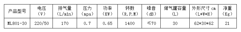 8.本產(chǎn)品為臺冠ML801-30無油空氣壓縮機,嚴禁加油潤滑。